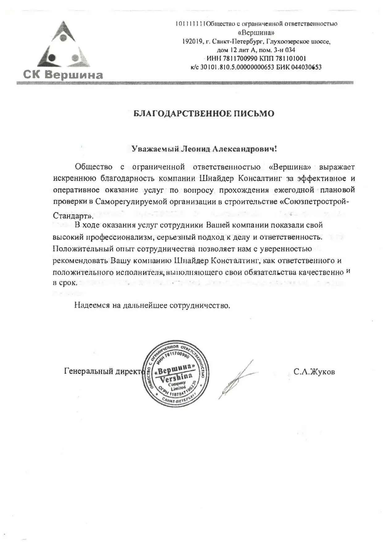 Гарантия внесения в реестр СРО и получение выписки установленного образца.